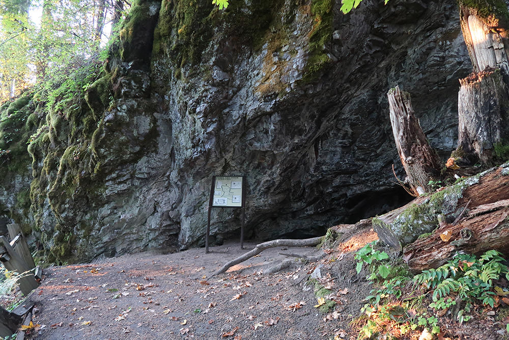 A very short trail leads to the cave from the parking lot and the cave itself is small enough to explore without the necessity of a flashlight. Chances are good that there will not be many other people if you visit the cave due to its remote location and anticlimactic appearance.