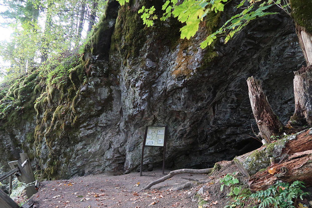 Layser Cave is a small mountain cave that sits on a hill far up above the valley outside the town of Randle, Washington. The cave is roughly 30 feet across and about 8 feet tall. Layser Cave should not be confused with other lava type caves in the area – there is no spelunking to do here, no long tubes of discovery. It is a small cave that was used for shelter by Native Americans thousands of years ago.