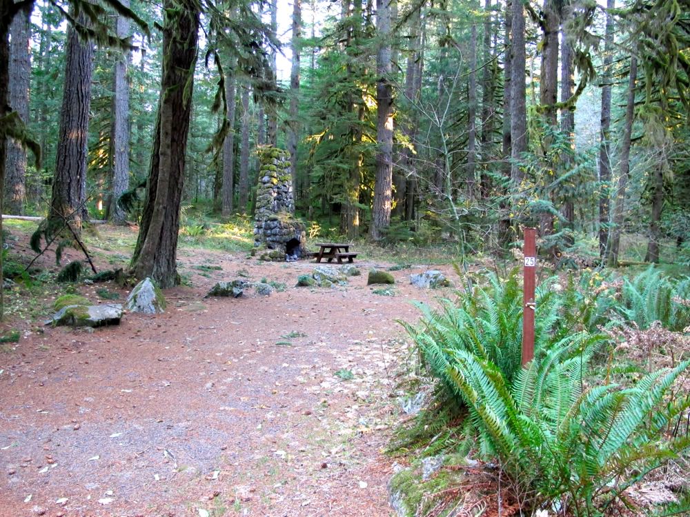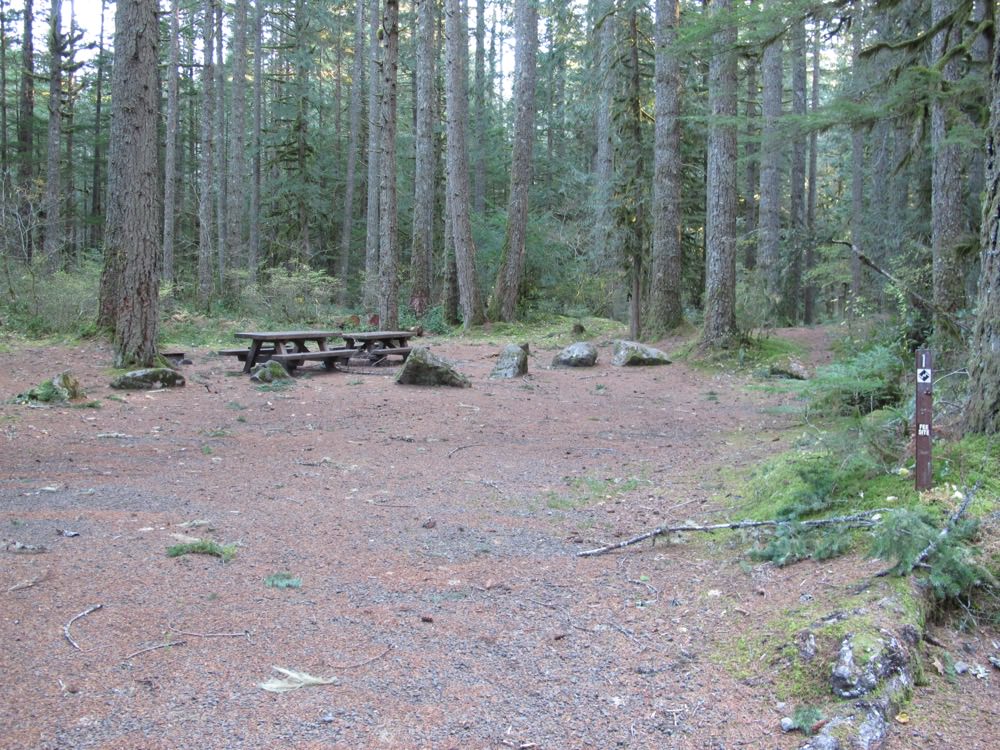 I just came back from two nights here and already look forward to going back. It is a small campground, which I like, and pretty shady with great sites along the creek, which drowns out sounds from Highway 26. The camp hosts were super nice and actually worked the site, keeping the pit toilets clean and stocked with TP, which doesn’t always happen at some campgrounds. Other pros: a hiking trail directly across the creek, close in to Portland. Highly recommend!