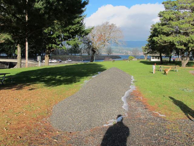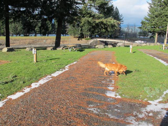 The Cascade Locks Marine Park Campground is nothing fancy – it is quite simply a place to park your RV and stay the night in a quaint little windy town in The Gorge. A tent camper – while allowed – would most definitely look out of place here.