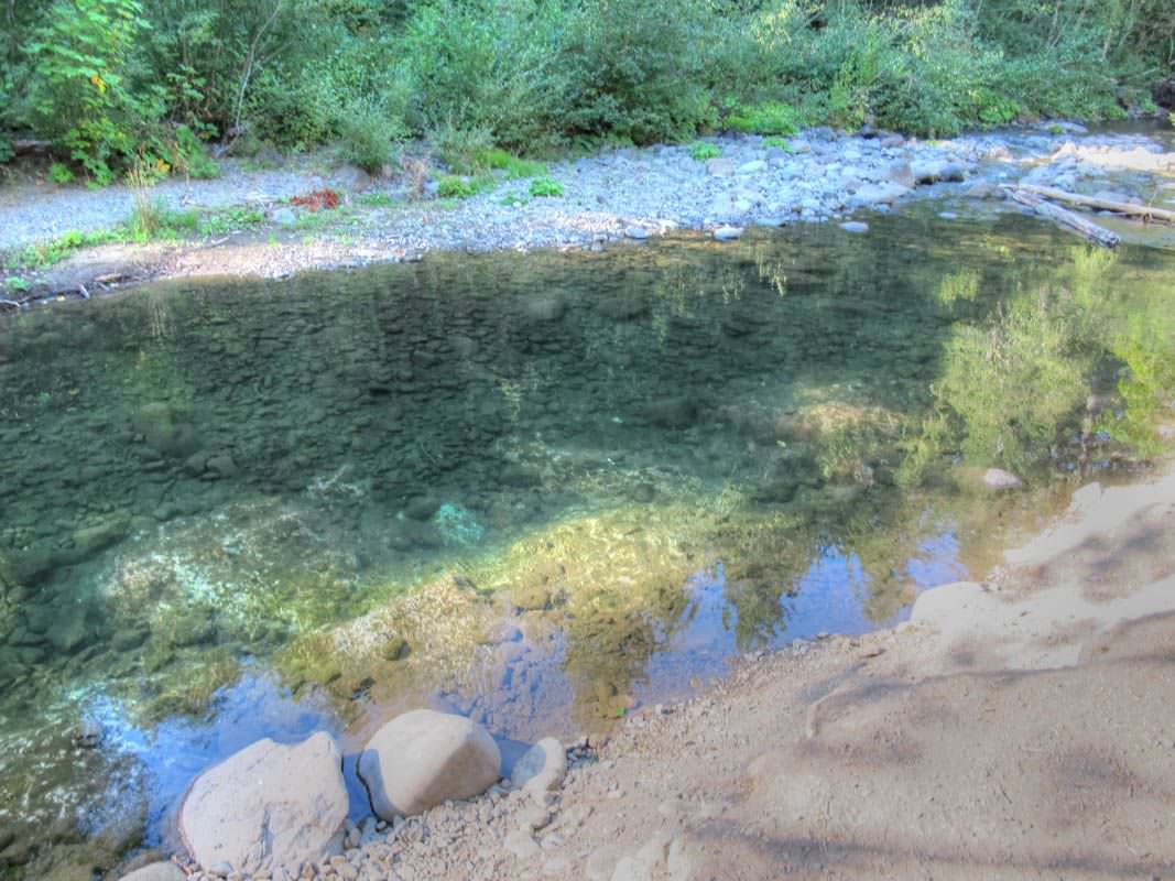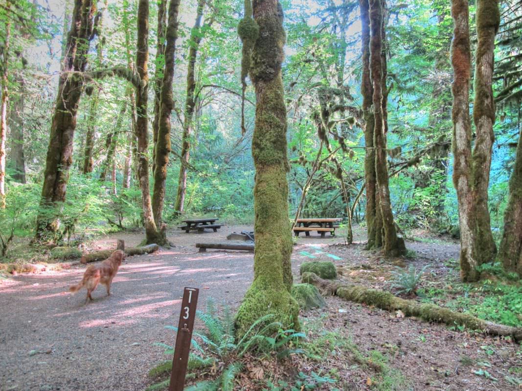 The campground is on the Oak Grove Fork of the Clackamas River and it is more of a creek than a river. Swimmability really depends on the water flow. Site 13 is on the river and towards the end of the campground so if you aren’t happy with the “swimming hole” adjacent to your site you could probably walk up river until you find a spot you like. You could also drive to the Clackamas River for swimming as well which is not far at all.